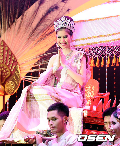 2010년 미스 태국, 크리차폰 홈본야삭 양이 두 손을 고이 모은 채 태국 전통의 인사를 하고 있다.