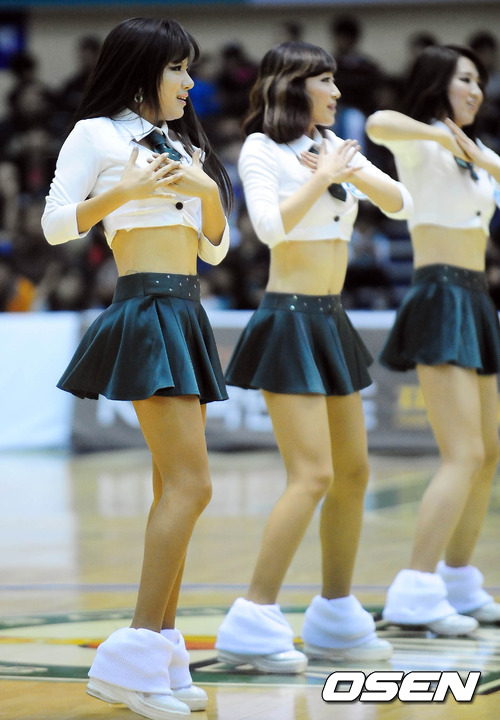14일 오후 원주 치악체육관에서 열린 '2011-2012 KB국민카드 프로농구' 원주 동부와 안양 인삼공사의 경기, 치어리더들이 화려한 공연을 펼치고 있다.