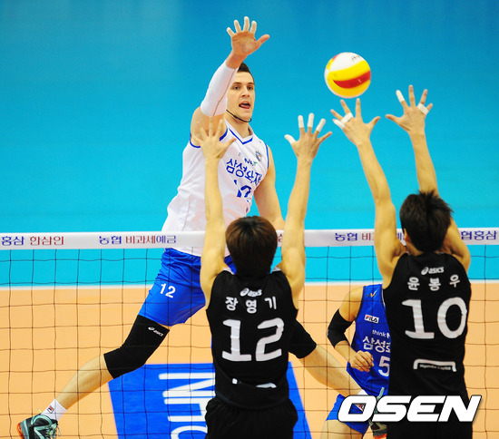 삼성화재는 14일 대전충무체육관에서 열린 '2011-2012 NH 농협V리그' 3라운드 현대캐피탈전에서 세트스코어 3-2(22-25 20-25 25-16 25-17 15-10) 풀세트 대역전승을 따냈다. 외국인 선수 가빈 슈미트가 40점으로 대폭발했다.