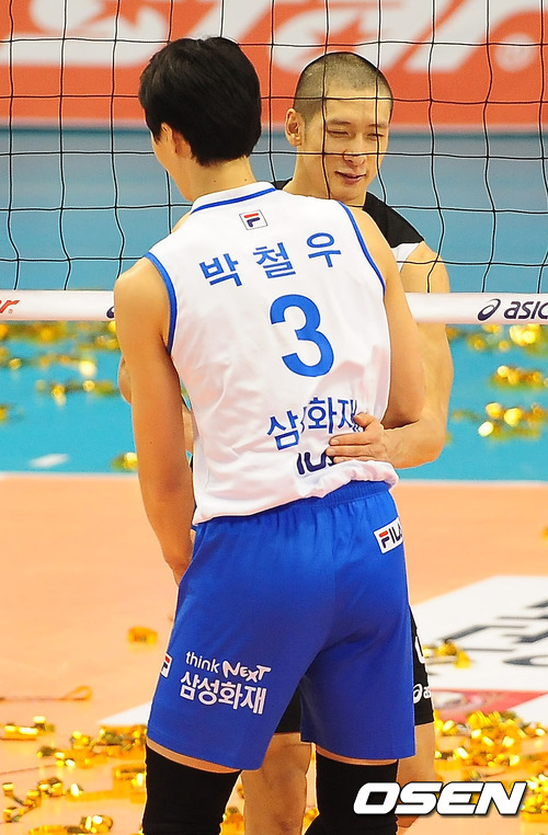 경기를 마치고 현대캐피탈 문성민이 삼성화재 박철우와 포옹을 하고 있다. / rumi@osen.co.kr