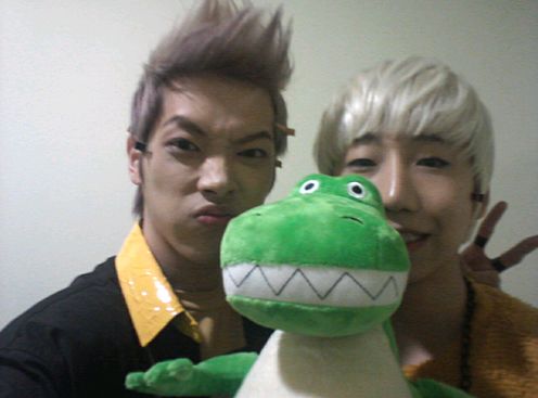 그룹 더블에이의 멤버 아우라와 김치가 인형을 들고 찍은 형제같은 사진을 공개했다.