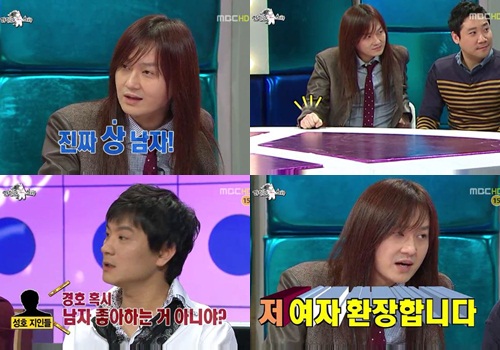 김경호는 지난 14일 오후 방송된 MBC 예능프로그램 ‘라디오스타’에 출연해 “나는 상 남자다. 여자에 환장한다”고 밝히며 남자를 좋아한다는 소문을 일축시켰다.