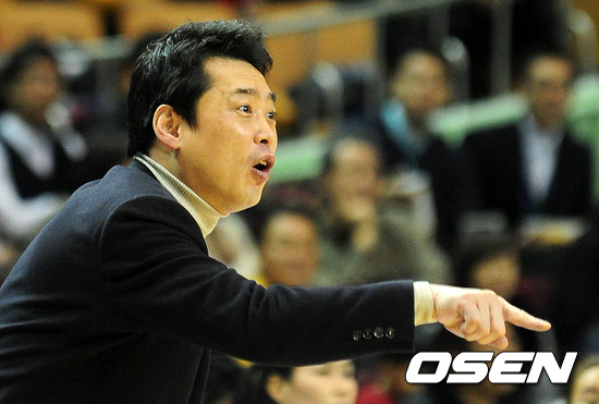 1쿼터 삼성 김상준 감독이 선수들에게 작전을 지시하고 있다.