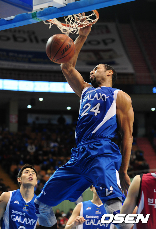 3쿼터 삼성 클라크가 강력한 원핸드 덩크슛을 성공시키고 있다.
