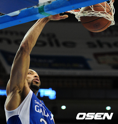 3쿼터 삼성 클라크가 원핸드 덩크슛을 성공하고 있다.
