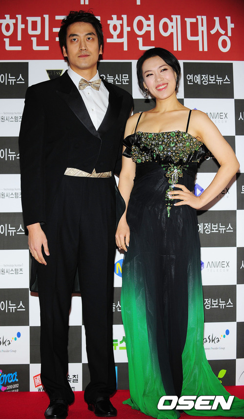 15일 오후 63시티 2층 국제회의장에서 열린 제19회 '대한민국문화연예대상' 시상식 포토월에서 김성원 이희경이 포즈를 취하고 있다.