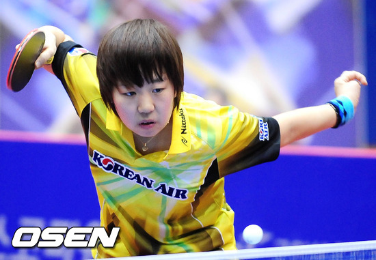 16일 오후 부천시 송내사회체육관에서 열린 '2011 MBC 탁구 최강전' 챔피언결정전 2차전 여자부 대한항공과 대우증권의 경기 1단식 대한항공 양하은이 서브를 넣고 있다.