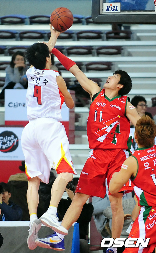 16일 오후 안양 실내체육관에서 열린 '2011-2012 KB국민카드 프로농구' 안양 인삼공사와 고양 오리온스의 경기 1쿼터 오리온스 최진수가 레이업슛을 시도하고 있다.