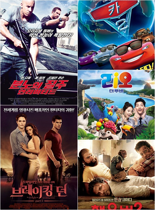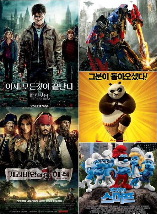 국내에서도 100만 관객을 돌파한 '개구쟁이 스머프'(The Smurfs, 7월 28일 개봉, 419,798,980달러), '분노의 질주: 언리미티드(Fast Five, 4월 20일 개봉, 416,300,000달러)가 5, 6위를 나타냈다.