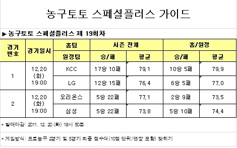 더블게임으로 발매되는 이번 농구토토 스페셜플러스 19회차 게임은 경기 시작 10분 전인 20일 오후 6시 50분에 발매가 마감된다.