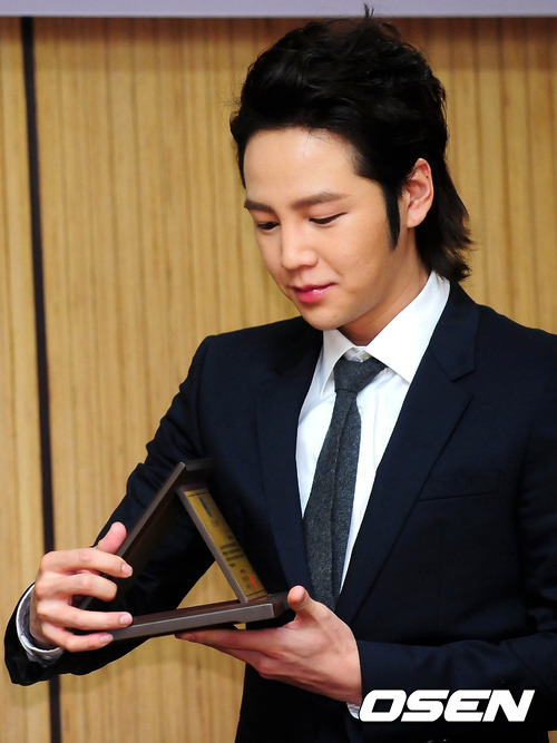 [OSEN = 백승철 기자] 장근석이 19일 오후 서울 왕십리 한양대학교 총장실에서 열린 학교 발전 기금 전달식에 참석해 임덕호 총장으로 부터 감사패를 받고 있다.
