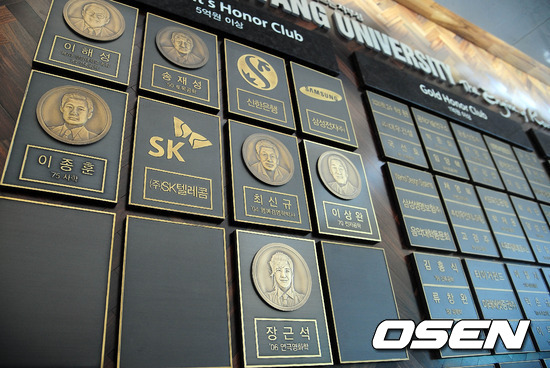 [OSEN = 백승철 기자] 19일 오후 서울 왕십리 한양대학교에서 열린 학교 발전 기금 전달식에 참석한 장근석의 명패와 얼굴이 세겨진 동판이 신본관에 위치한 기부자 명단에 붙어 있다.