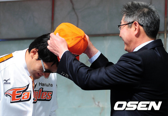 박찬호는 20일 서울 소공동 플라자호텔에서 입단식 겸 기자회견을 가졌다. 박찬호의 입단을 축하하기 위해 이 자리에는 정승진 사장, 노재덕 단장, 한대화 감독, 주장 한상훈, 박정진, 김태균 등이 참석했다.