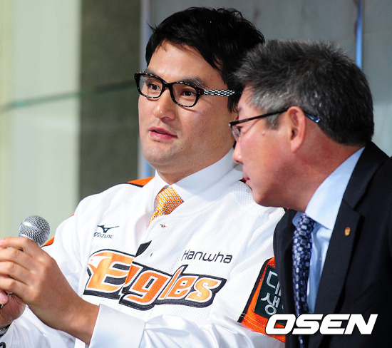 내년 시즌 한국에서 뛸 수 있도록 기회를 주시고, 저의 뜻에 이해를 보내주신 구본능 KBO 총재님께 감사 말씀을 드리고 싶다. 그리고 특별법을 통과시키는데 애를 많이 써주시고 현실화 시켜주신 사장·단장·감독님과 각별히 애정을 써 주신 김승연 회장님께 감사의 말씀을 전하고 싶다. 또 깊이 생각해주시고 넓게 생각해 주셔서 한화와 저의 뜻을 동의해서 저에게 기회를 열어주신 각 구단 임원과 이사·사장·단장님들 그분들의 뜻에 감사한 마음을 갖고 한국야구의 발전과 즐거움을 만들이 위해 노력하고 최선을 다하겠다. 굉장히 기쁜 날이다. 어젯밤 한숨도 못 자고 왔는데도 굉장히 에너지가 넘친다. 굉장히 감사드리고, 열심히 하겠다.