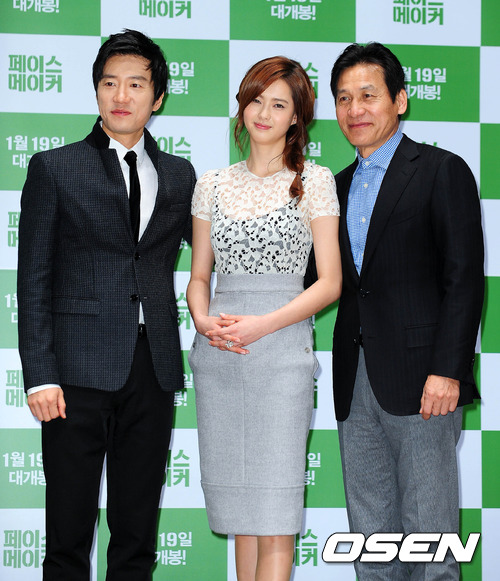 배우 김명민, 고아라, 안성기가 포토타임을 갖고 있다.