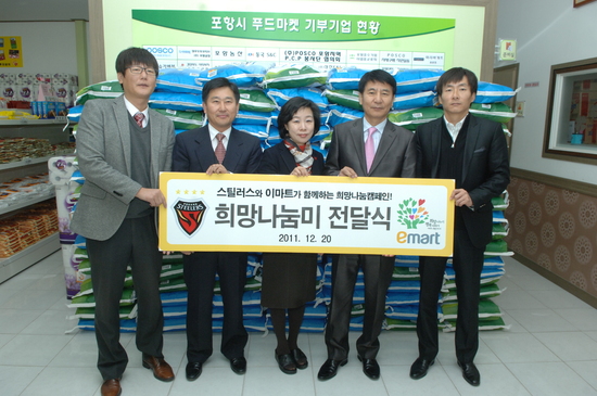 포항 스틸러스는 올해 K리그 정규리그에서 득점한 골당 이맛쌀 20kg짜리 각 1포씩을 득점 선수와 포항, 이마트 이동점과 포항점이 매칭그랜트 방식으로 총 4포씩 적립하는 '희망나눔 프로젝트'를 전개했다. 올해 포항은 정규리그에서 총 59골을 득점했고, 한 시즌 동안 총 236포의 쌀이 적립됐다.