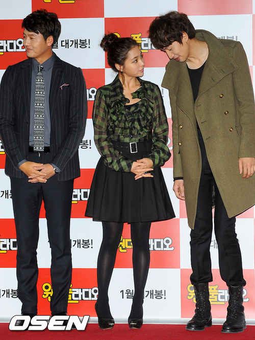 20일 오후 서울 동대문 메가박스에서 진행된 영화 '원더풀 라디오' 언론시사회에서 배우 이민정과 이광수가 이야기를 나누고 있다.