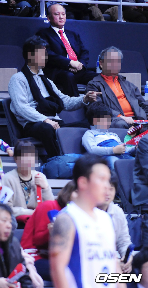 20일 오후 고양체육관에서 열린 '2011-2012 KB국민카드 프로농구' 고양 오리온스와 서울 삼성의 경기 2쿼터 오리온스 심용섭 사장이 김승현이 출전한 경기를 지켜보고 있다.