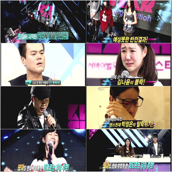 최근 진행된 'K팝스타' 4회분 녹화에서는 심사위원 3인방 양현석, 박진영, 보아의 까다로운 1라운드 심사에서 살아남은 쟁쟁한 참가자들의 본격적인 경합이 담겼다. 일명 오디션 2라운드 '랭킹 오디션'이다.