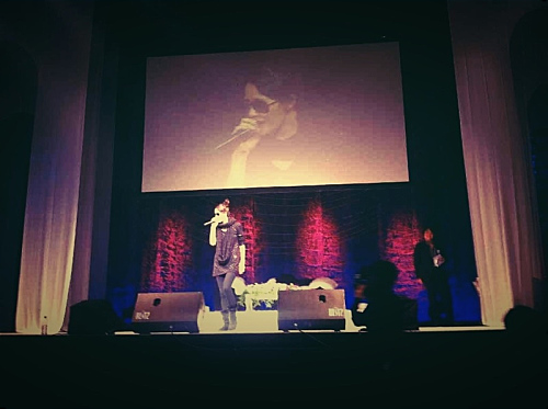 사진 속 김선아는 무대 위에서 마이크를 잡고 리허설 중인 모습으로 전체적으로 블랙 컬러 의상으로 코디했다. 특히 벽 뒷면에 설치된 커다란 스크린은 팬들이 김선아를 더 자세히 볼 수 있게 했다.