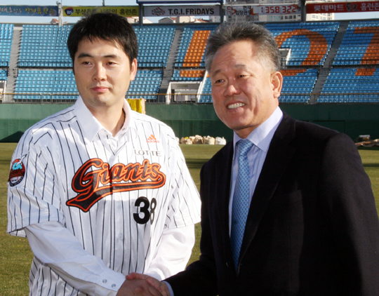 롯데 자이언츠 핵잠수함 정대현(33)이 FA 계약 후 처음으로 구단을 방문했다. 이날 정대현은 장병수 롯데 자이언츠 대표이사와 배재후 단장, 양승호 감독을 만나 인사를 나눴다. 다음은 정대현과의 일문일답.