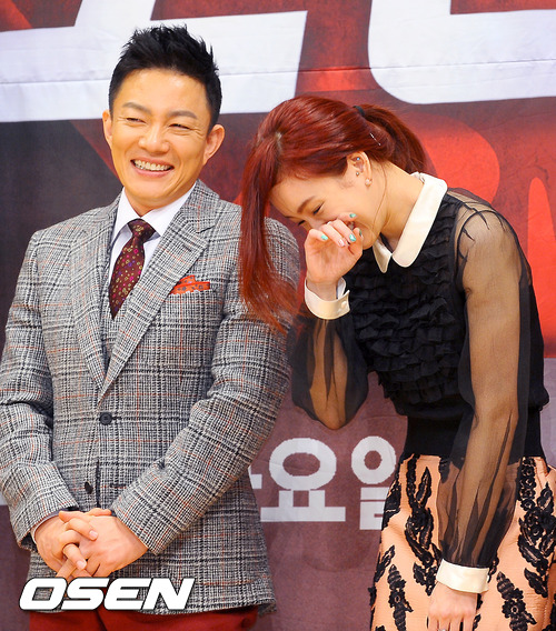 22일 오후 서울 목동 SBS사옥에서 진행된 SBS 새 월화극 '샐러리맨 초한지' 제작발표회에서 참석한 배우 정려원과 이범수가 미소 짓고 있다.