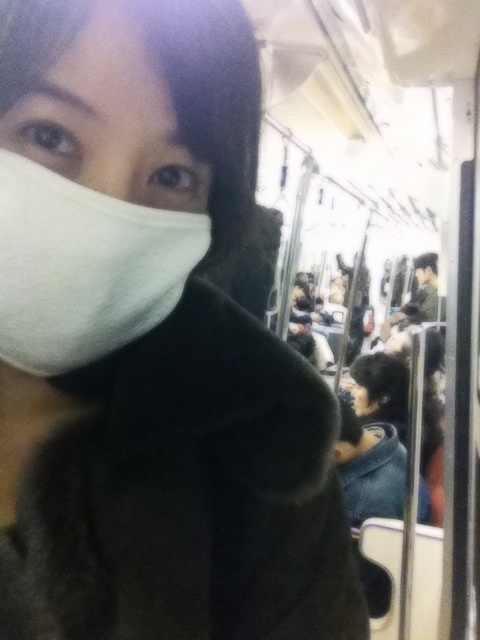 사진 속 김선아는 흰 색 마스크로 얼굴을 가린 채 지하철에서 사진을 찍고 있다. 얼굴이 반쯤 가려져 있어도 숨길 수 없는 미모가 인상적이다.