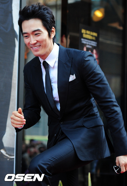 이날 오픈식에 점주인 배우 송승헌이 포토타임을 갖기 위해 계단에 오르고 있다.