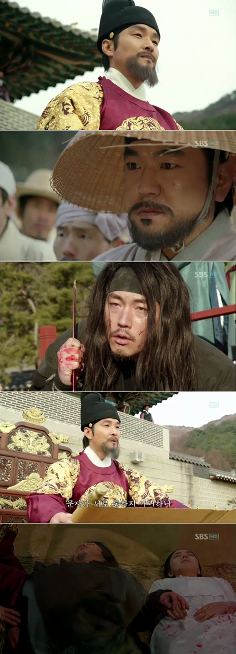 22일 오후 방송된 '뿌리깊은 나무' 마지막 회에서 정기준(윤제문 분)은 해례의 정체가 소이(신세경)라는 것을 알게 돼 소이를 죽이려한다. 그 순간 채윤(장혁)이 나타나 정기준의 목에 칼을 겨눠 소이를 구하지만, 이내 소이는 개파이(김성현 분)의 독화살에 맞는다.