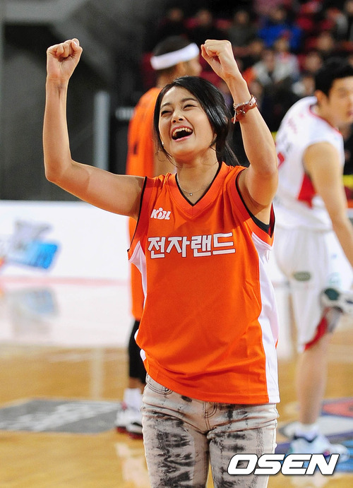 경기 전 태권도선수 출신 배우 태미가 골이 안들어가자 아쉬워하고 있다.