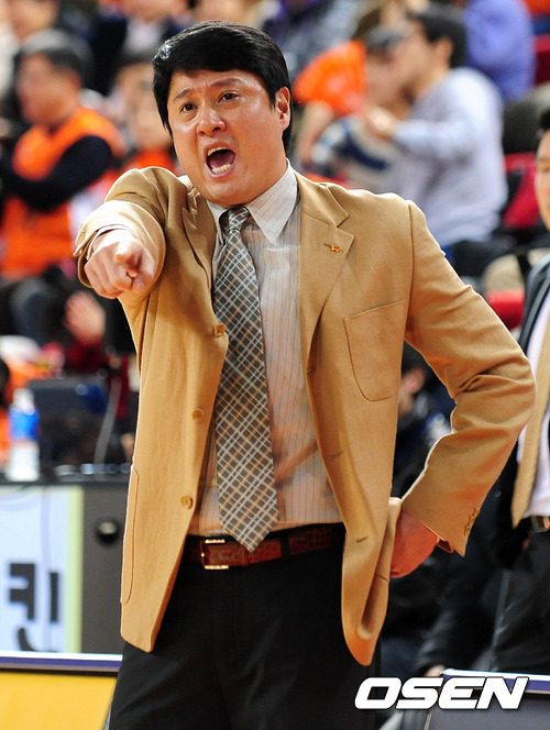 2쿼터 SK 문경은 감독대행이 선수들에게 작전을 지시하고 있다.