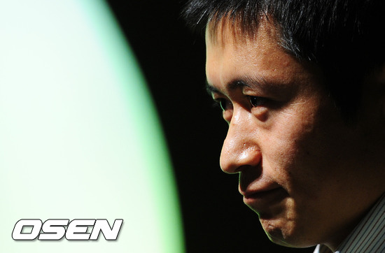 이영표가 대표팀 관련 질문에 귀기울이며 진지한 표정을 짓고 있다.