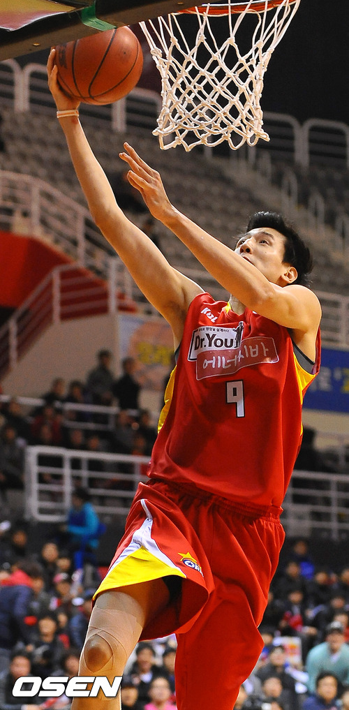 27일 오후 경기도 고양시 일산동구 고양체육관서 열린 '2011-2012 KB국민카드 프로농구' 고양 오리온스와 안양 KGC의 경기 1쿼터 오리온스 최진수가 레이업슛을 성공하고 있다