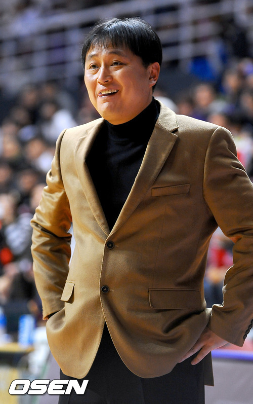27일 오후 경기도 고양시 일산동구 고양체육관서 열린 '2011-2012 KB국민카드 프로농구' 고양 오리온스와 안양 KGC의 경기 3쿼터 KGC 이상범 감독이 경기가 안풀리자 허탈한 웃음을 짓고 있다.