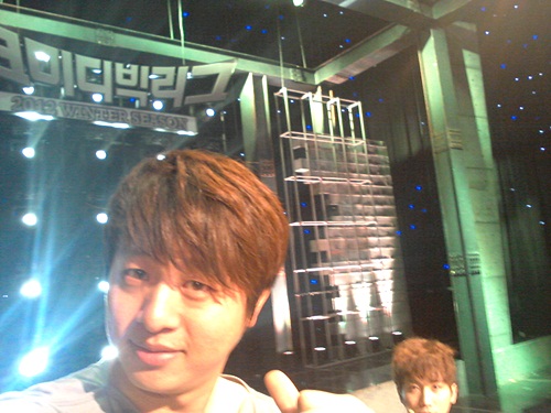 [OSEN=김경주 인턴기자] 개그맨 유상무가 촬영 세트장의 조명을 이용해 얼굴에서 빛이 나도록 사진을 찍어 폭소를 유발하고 있다.
