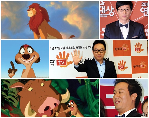 이 작품 속 캐릭터들은 특히 ‘무한도전’ 멤버들과 특징이 유사해 눈길을 끈다. 진정한 왕의 모습을 보여주는 듬직한 ‘심바’는 무한도전의 영원한 1인자 유재석과 비교되며 가끔은 거칠지만 마음 약하고 유머러스한 ‘티몬’은 박명수, 식탐이 넘치는 멧돼지 ‘품바’는 정준하, ‘무파사’의 집사로 끊임없는 잔소리를 하는 ‘자주’는 수다쟁이 노홍철과 씽크로율 100%를 자랑한다.