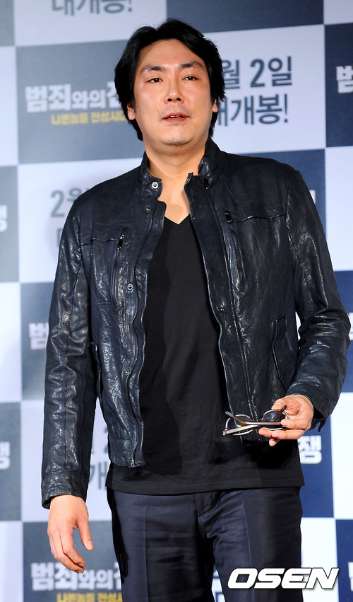 28일 오전 서울 동대문 메가박스에서 진행된 영화 '범죄와의 전쟁' 제작보고회에서 배우 조진웅이 포즈를 취하고 있다.