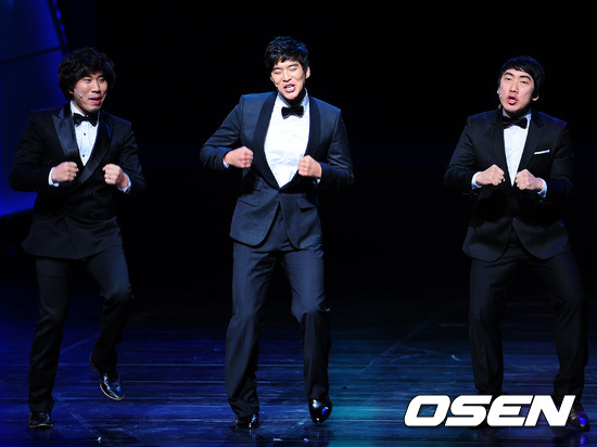 29일 오후 경기도 과천시 중앙동 과천 시민회관 대극장에서 열린 제 12회 대한민국 영상대전에서 올해의 포토제닉 개그부문 수상한 개그콘서트 감사합니다 (정태호,송병철, 이상훈)팀 이 축하무대를 꾸미고 있다.