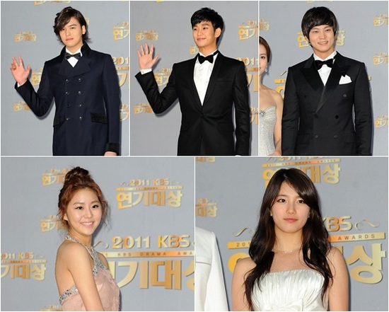 배우 김수현 이장우 주원 수지 유이 등 총 5명의 신예들이 2011 'KBS 연기대상' 신인상의 영예를 거머쥐었다.