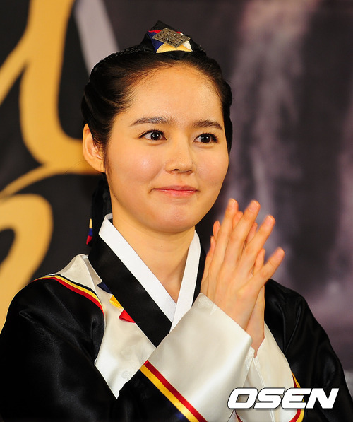 2일 오후 서울 영등포구 여의도 63빌딩 별관 주니퍼 룸에서 열린 MBC 수목 미니시리즈 '해를 품은 달'의 제작발표회에서 한가인이 박수를 치고 있다.