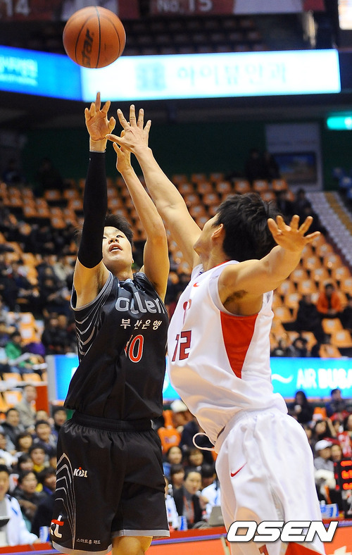 4일 오후 부산 사직실내체육관서 열린 2011-2012 KB국민카드 프로농구 부산 KT와 서울 SK의 경기 4쿼터 KT 조성민이 미들슛을 성공하고 있다.