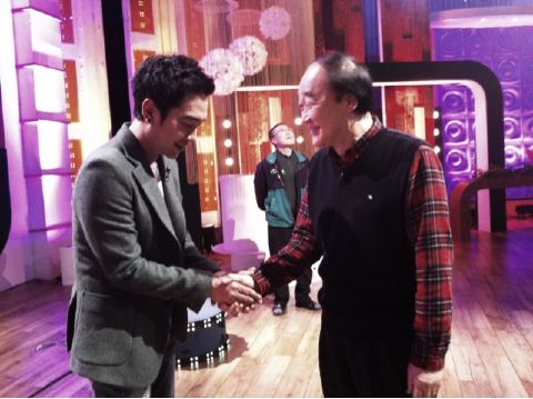 사진 속 고영욱은 촬영 세트장을 배경으로 장광과 악수를 나누고 있다. 온화한 표정의 장광의 모습이 보는 이들의 시선을 사로잡고 있다.