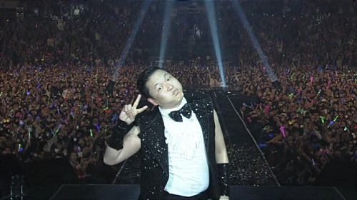 사진 속 싸이는 지난 해 연말 열린 김장훈과의 합동 콘서트 ‘완타치’ 공연 중으로 보인다. 그는 무대 뒤편에 설치된 카메라를 향해 볼에 바람을 넣어 깜찍한 표정을 짓고 브이자 포즈를 취했다. 특히 무대 주변에 가득 찬 관객들이 눈길을 끈다.