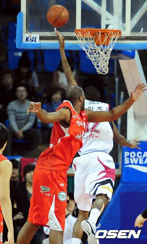 6일 오후 서울 잠실학생체육관에서 열린 '2011-2012 KB국민카드 프로농구' 서울 SK와 창원 LG의 경기 1쿼터 LG 헤인즈가 SK 맥카스킬을 피해 레이업슛을 시도하고 있다.