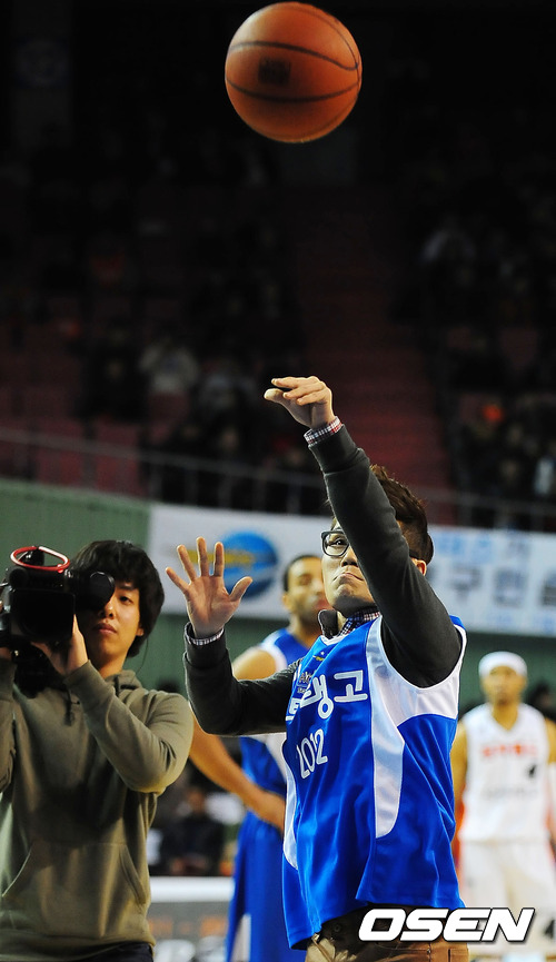 7일 오후 서울 잠실실내체육관에서 열린 '2011~2012 KB국민카드 프로농구' 서울 삼성과 인천 전자랜드의 경기에서 가수 김범수가 시투를 하고 있다.