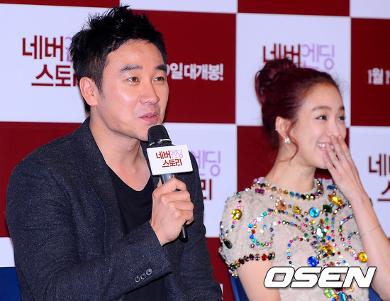 엄태웅과 정려원은 9일 서울 왕십리 CGV에서 개최된 영화 '네버엔딩스토리' 언론배급시사회 및 기자간담회에서 시종일관 서로에 대한 칭찬을 하기에 바빴다.