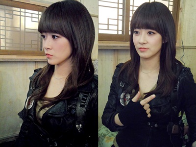 다른 사진에서는 장난기가 엿보이는 얼굴을 한 류현경이 옆구리에 찬 권총 대신 손으로 총 모양을 만들어 코믹한 모습을 연출하고 있다.