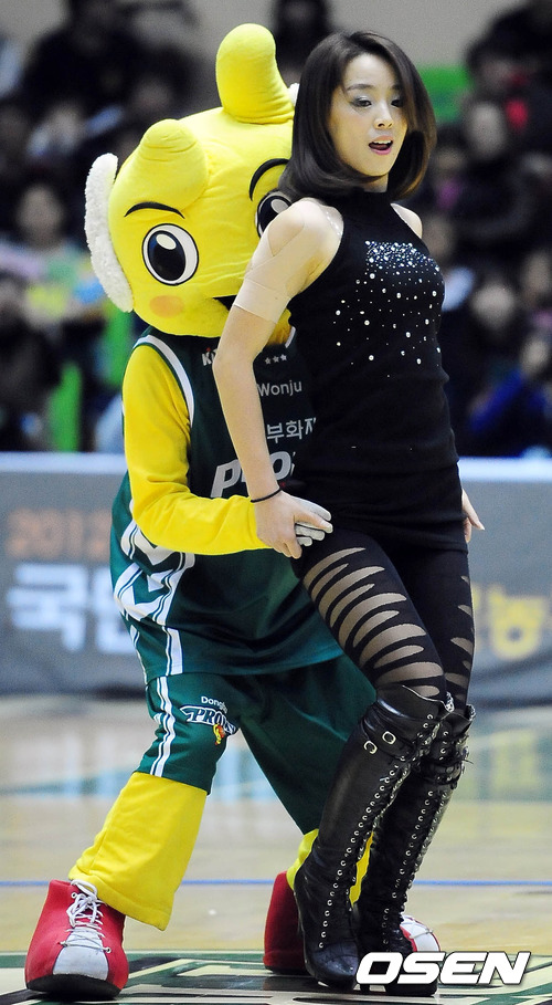 11일 오후 원주 치악체육관에서 열린 '2011-2012 KB국민카드 프로농구' 원주 동부와 안양 인삼공사의 경기, 치어리더가 화려한 공연을 펼치고 있다.