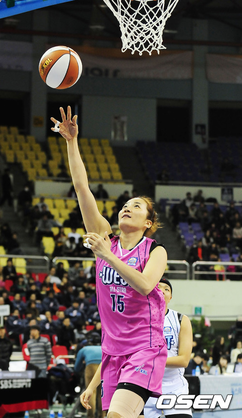 15일 오후 부천 실내 체육관에서 열린 신세계 이마트 2011~2012 여자프로농구 올스타전에서 올스타전에서 116-116으로 나란히 무승부를 기록했다. 3쿼터 서부 신정자가 속공에 성공하고 있다.