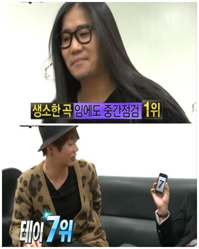[OSEN=박미경 인턴기자] MBC ‘우리들의 일밤-나는 가수다(이하 나가수)’ 12라운드 2차 경연 중간평가에서 박완규가 1위, 테이가 꼴찌인 7위를 차지했다.